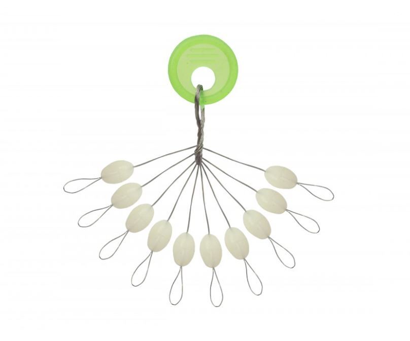 Großer Gummistopper (5x7 mm), fluoreszierend. Unverzichtbar für Welsmontagen (Fixierung von U-Posen). Hält fest auf dicken Schnüren.