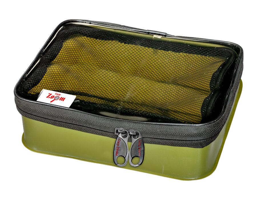 Mittelgroße quadratische Box aus robustem EVA. Ideal für Schnurspulen, PVA oder größeres Zubehör. Der transparente Deckel spart Suchzeit.