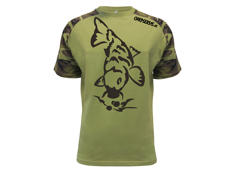 Stylisches Kurzarm-Angelshirt in Militärgrün. Aus 100% Baumwolle für Komfort und Atmungsaktivität. Mit hochwertigem Karpfen-Aufdruck auf dem Rücken, Logo am Ärmel und Motiv auf der Brust. Perfekt für Fans.