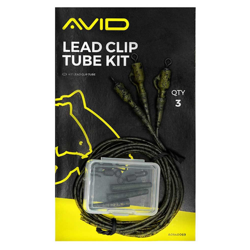 Set Lead Clip Tube Kit obsahuje 3 kompletní koncové sestavy, které se skládají ze 75 cm hadičky Outline Sinking Rig Tube, převleku Tail Rubber, závěsky Lead Clip a obratlíku velikosti 8.