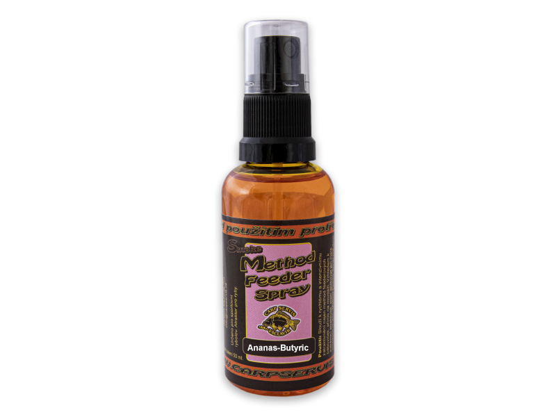 Extremely effective spray combining sweet Pineapple and sharp Butyric acid. Designed for instant boosting of filled method feeders. Upon impact, it creates an intense yellow cloud around the bait, attracting fish visually and by scent.
