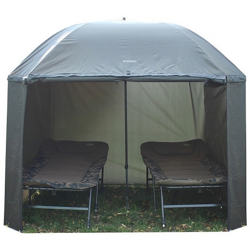Umbrella with side panel Full Cover made of 210D material with a canopy in the shape of a square. The seams are taped, there are four meshes for anchoring around the perimeter of the canopy, the umbrella is supplied with four adjustable ropes and pegs. The umbrella can be tilted using a metal CNC joint. The ribs are made of 1.6 m long steel wires, anodized in black. The center rod is telescopic with a new, very reliable adapter that grips the inner tube around the entire circumference. The dimensions of the sides of the unfolded umbrella are 2.20x2.20 m, the height of the side is 140 cm. Two loungers of standard dimensions can be placed in the interior with an overview. The front door has a mica window and can be rolled up. Transport length is 1.58 m, weight 5.1 kg. The umbrella is delivered in a transport bag.