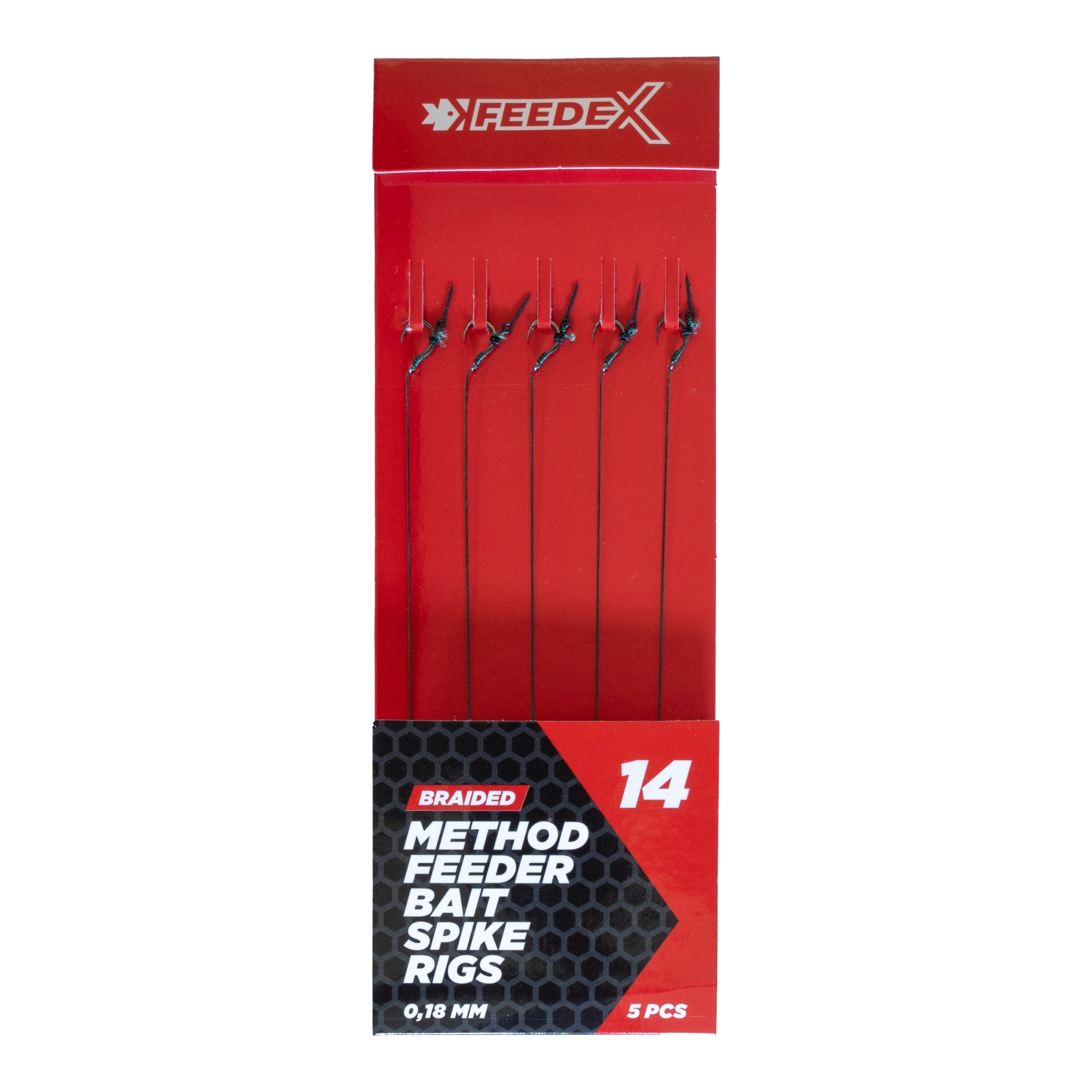 Ultra delikatne przypony Feeder Expert Method Feeder nr 14 to najmniejszy wariant na najbardziej wymagające warunki. Wyposażone w miniaturowy, ale mocny haczyk Spec-X, stworzony na lodowatą wodę i przełowione zbiorniki. Przypon z cienkiej plecionki (10 cm) daje przynęcie maksymalną swobodę, a igła (bait spike) pewnie trzyma najmniejsze pop-upy.