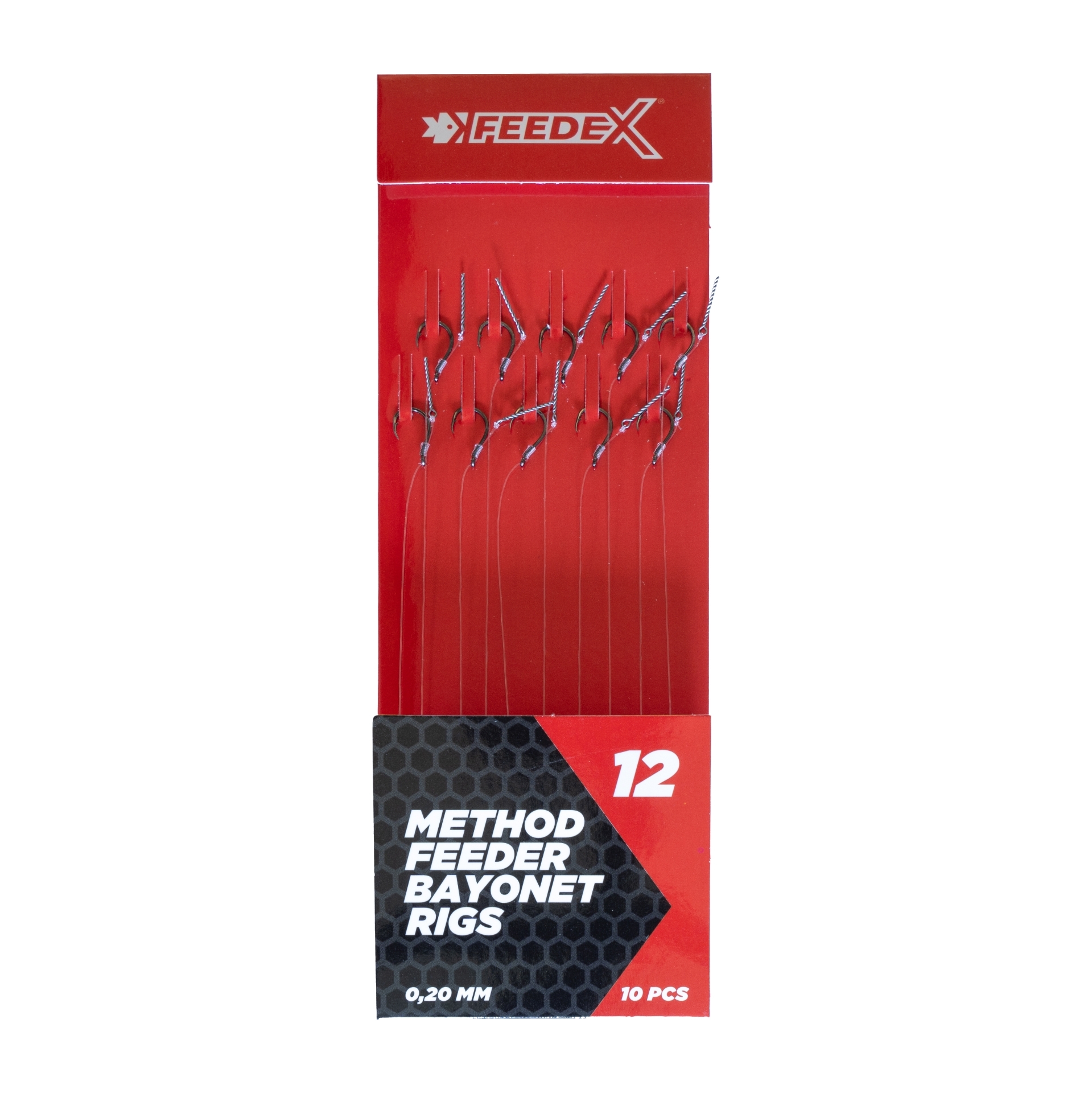 Przypony Feeder Expert Method Feeder w rozmiarze 12 z bajonetem to najwyższa precyzja na czystą wodę. Wyposażone w haczyk Spec-X, który gwarantuje pewne zacięcie nawet małych przynęt. Przypon z 10 cm fluorocarbonu jest niewidoczny dla ryb. Bajonet idealnie sprawdza se przy mini waftersach (6 mm) oraz kukurydzy, trzymając je pewnie przy rzucie.